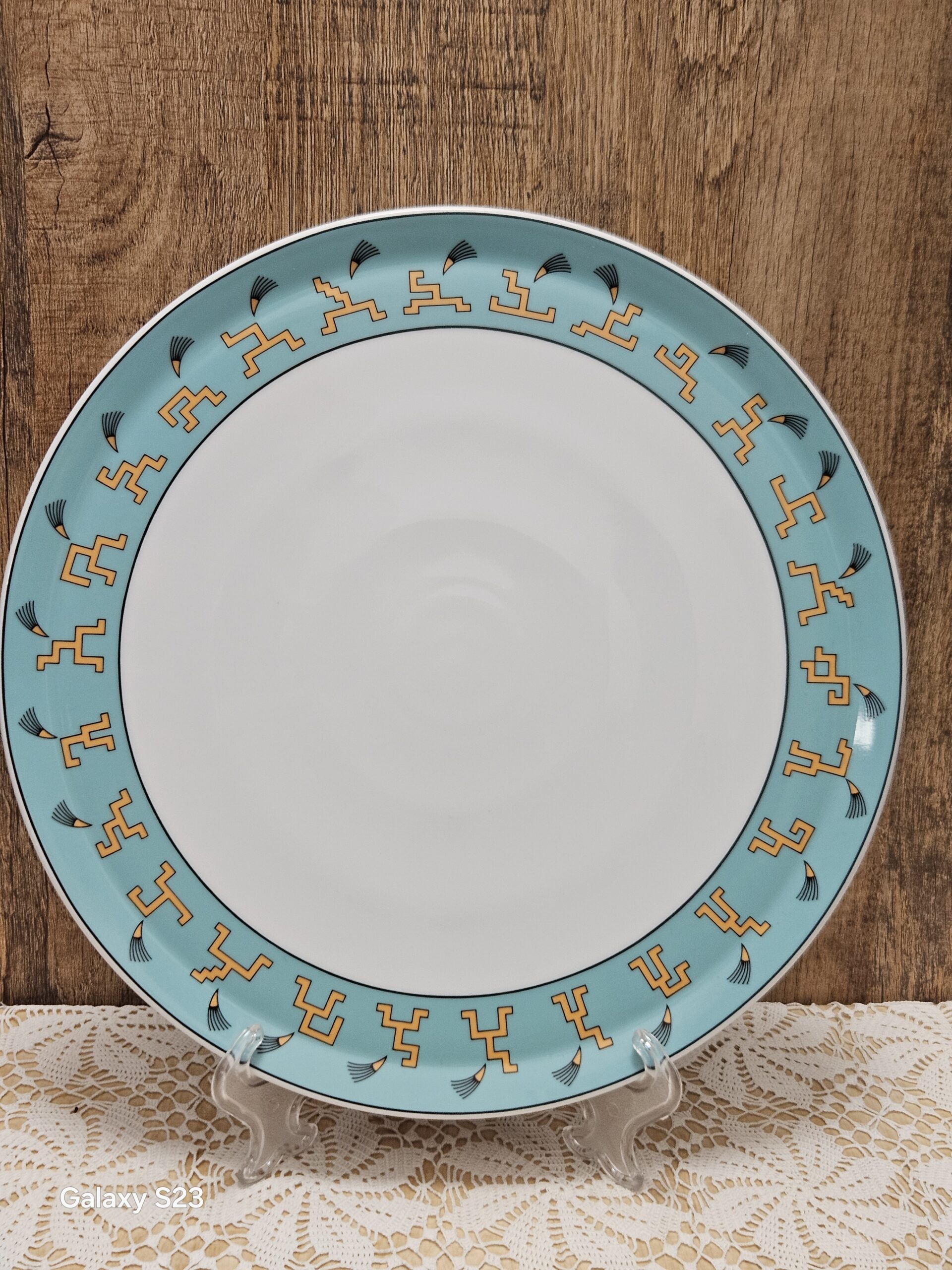 Porcelanowy talerz wytwórni Rosenthal, seria Avenue, decor New York. Lata 1950-60. Delikatna biała porcelana. Średnica talerza 31 cm, wysokość 1,5 cm. Cena 130 zł.