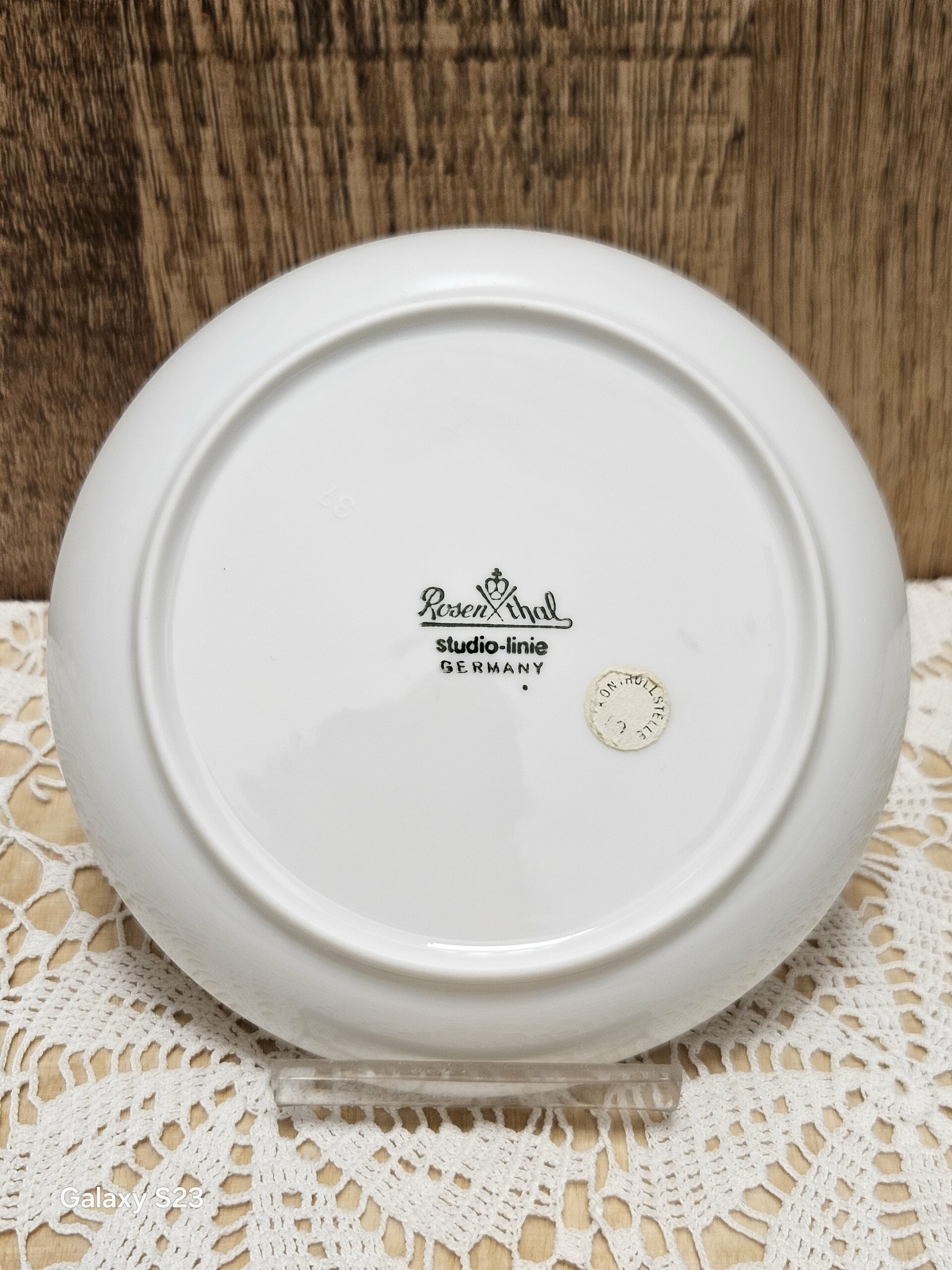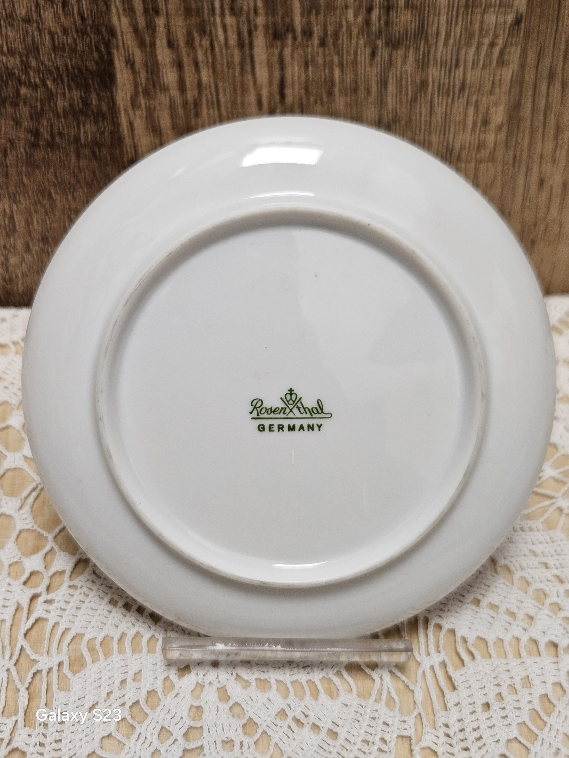 Porcelanowe talerzyki deserowe wytwórni porcelany Rosenthal. Bardzo delikatny wzór i kolorystyka. Lata 50-60. Średnica 12 cm, wysokość 1,5 cm. Cena za jeden talerzyk 30 zł. cena za komplet sześciu sztuk 140 zł.