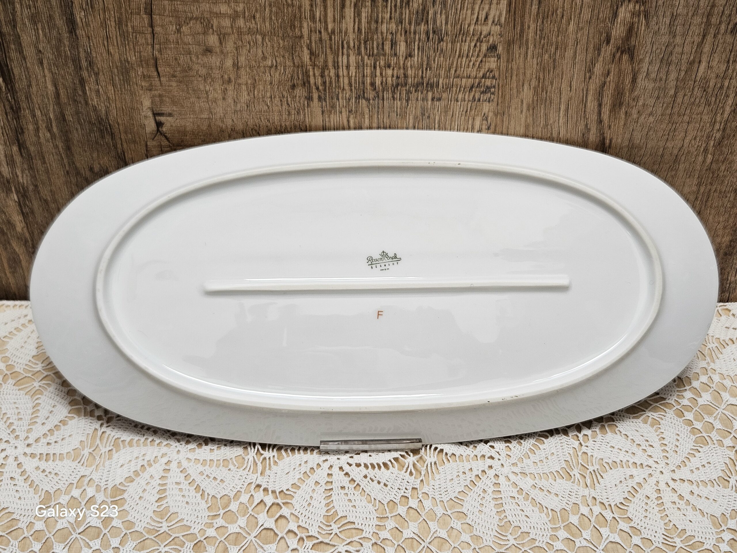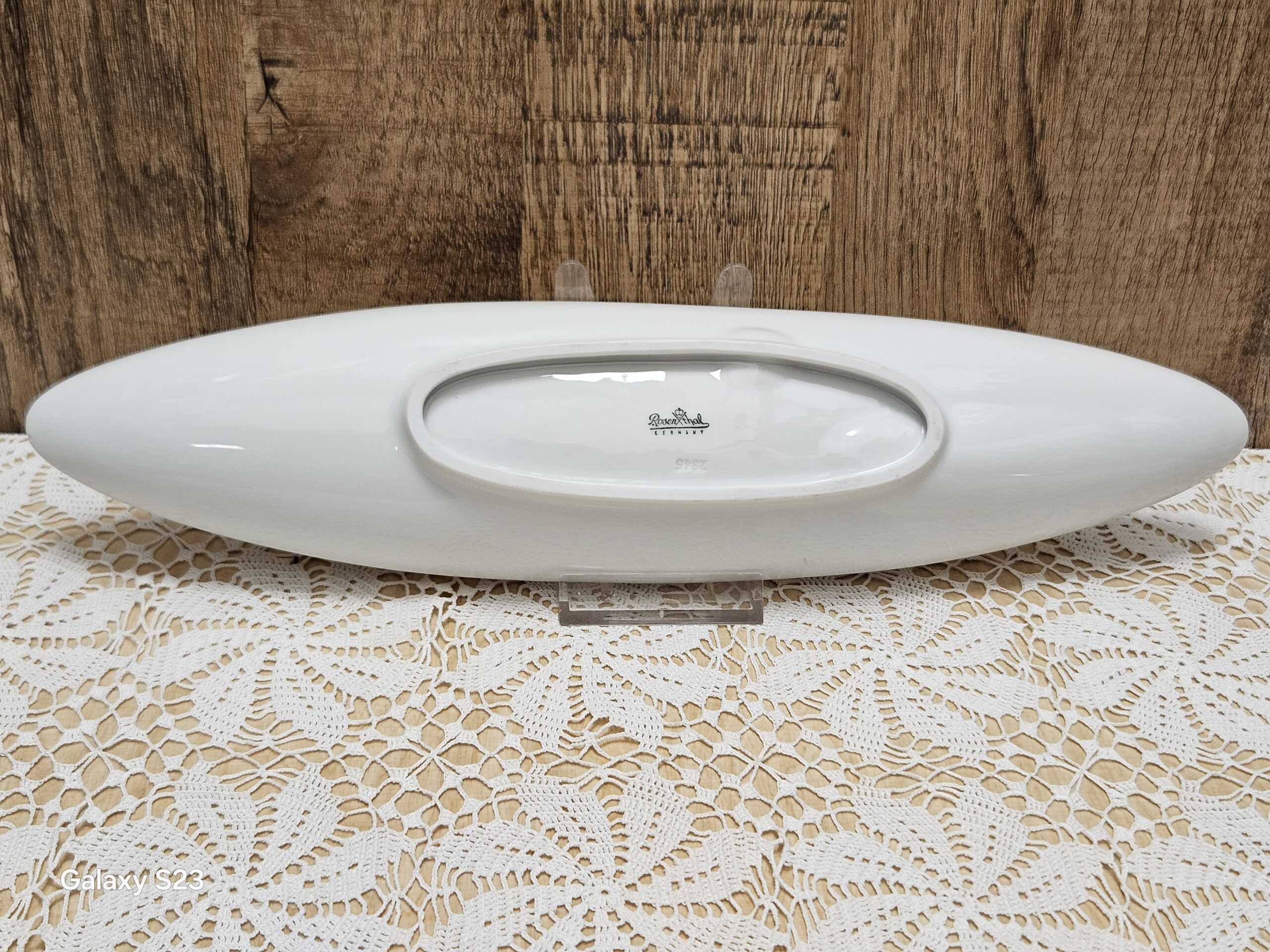Owalny talerz marki Rosenthal, model 2000, Hyde Park. Projekt Else Fischer-Treyde. Lata 50-60. Biała porcelana. Z tej serii można znależć na mojej stronie więcej elementów- do wyczerpania zapasów. Wymiar talerza: długość 36,5 cm, szerokość 17 cm, wysokość 2,5 cm. Cena 60 zł.