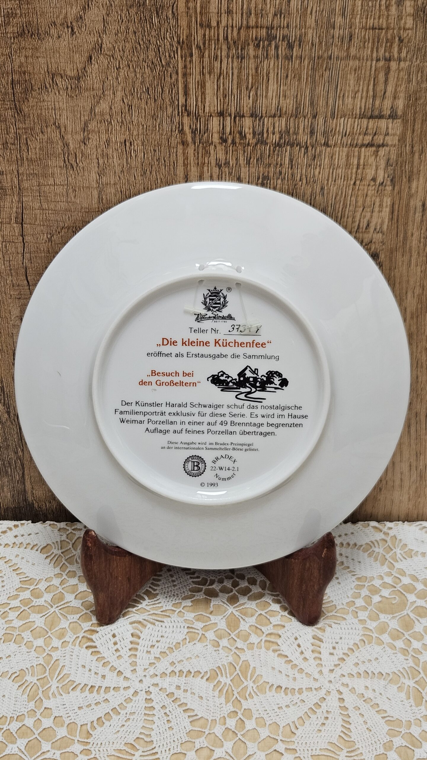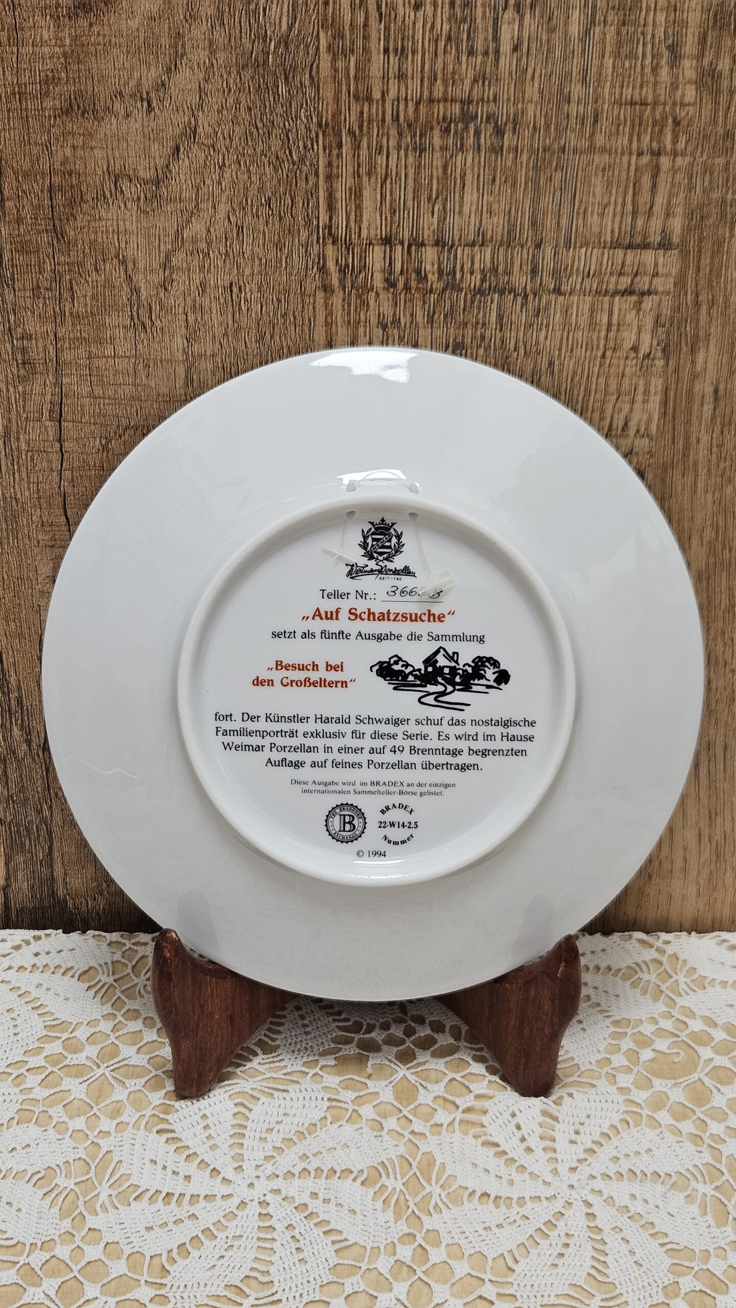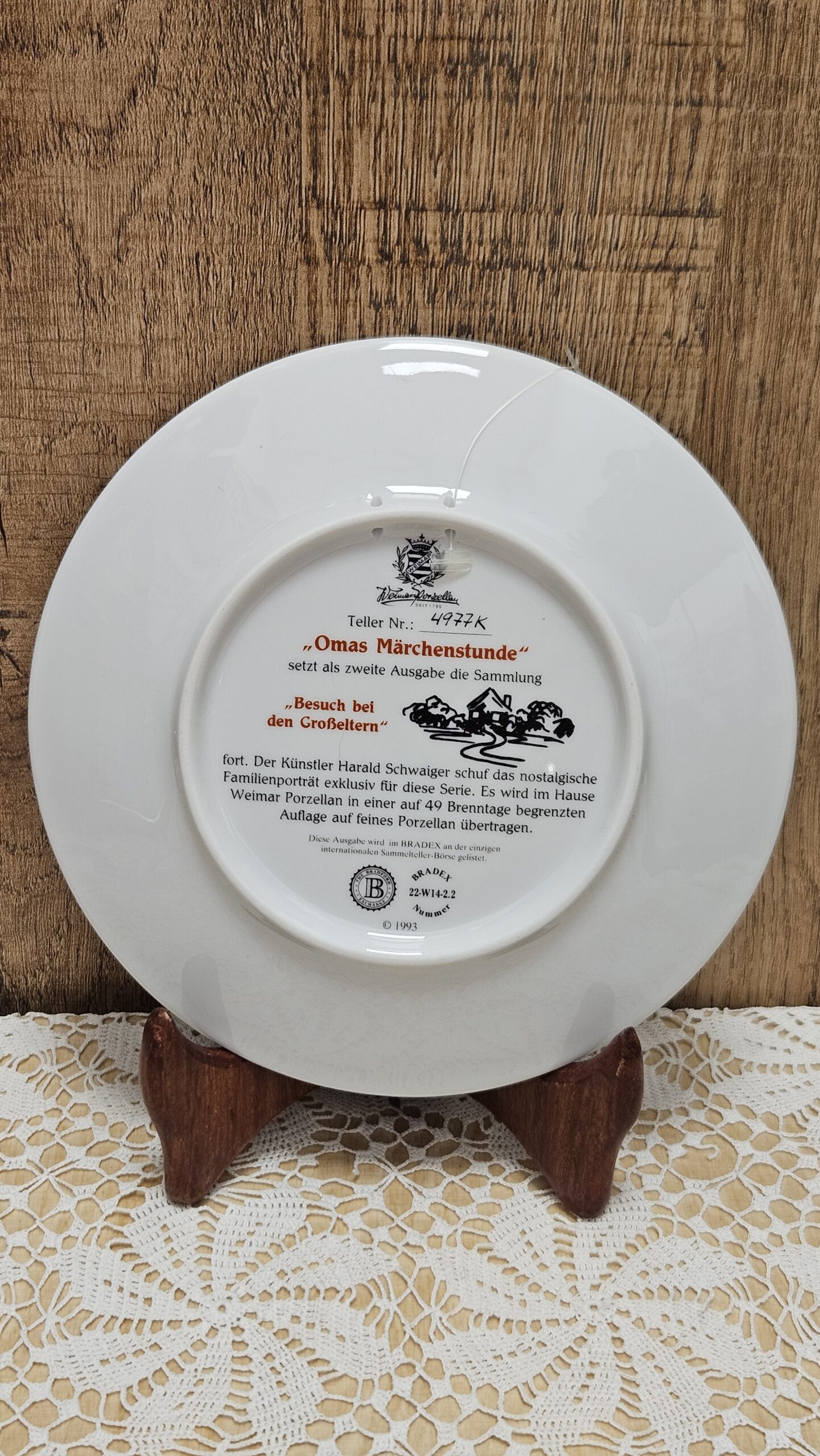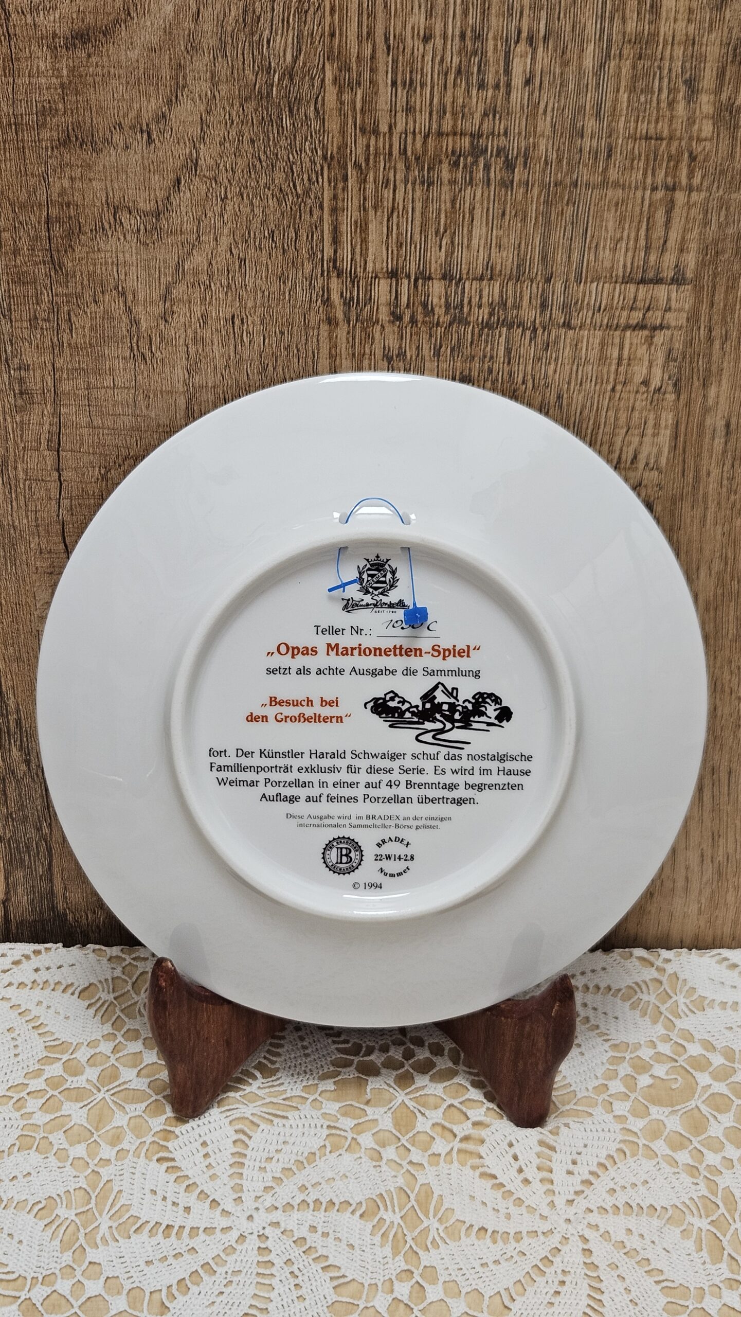 Seria dziewięciu talerzy kolekcjonerskich wykonanych z porcelany przez wytwórnie porcelany Weimar. Limitowana seria wydana w roku 1993, wpisana do międzynarodowego katalogu Bradex. Zatytułowana „Wizyta u dziadków”, stworzona przez artystę Harald Schwaiger. Osiem talerzy o średnicy 19,5 cm, wysokości 2 cm. Jeden talerz o średnicy 26 cm, wysokość 2 cm. Cena za pojedynczy talerz mały 70 zł. Cena za duży 90 zł. Cena za komplet 9 sztuk 500 zł.