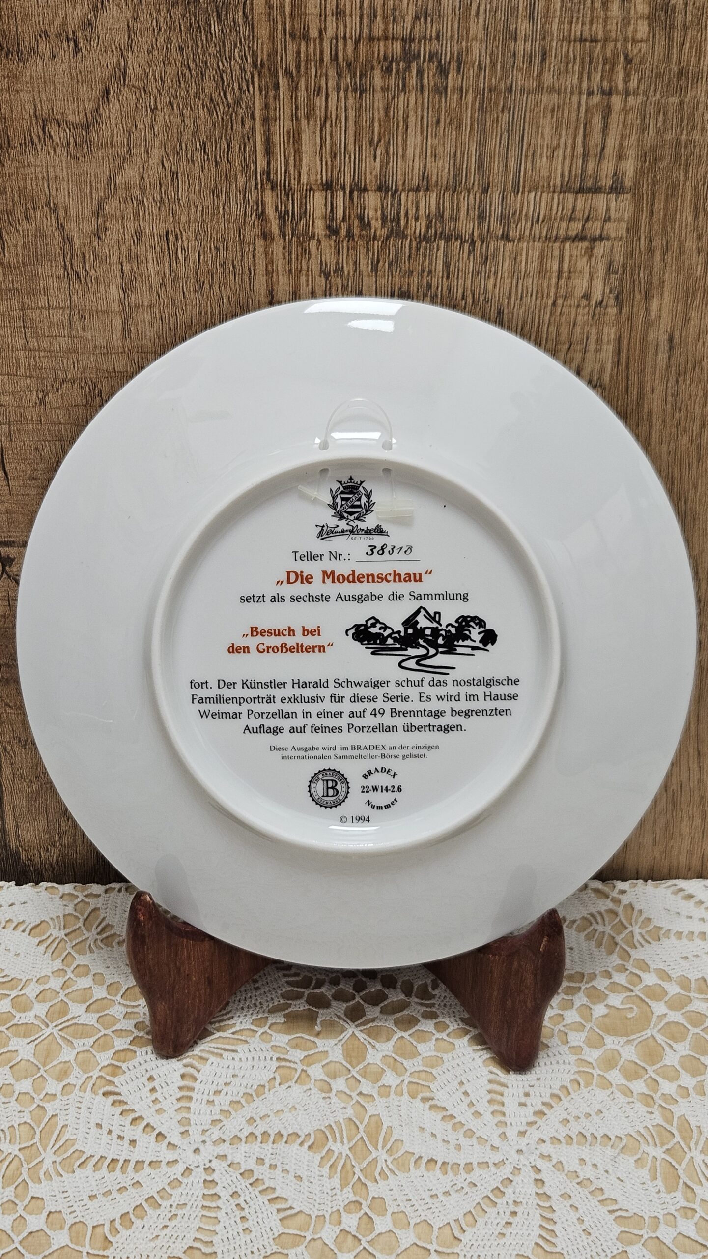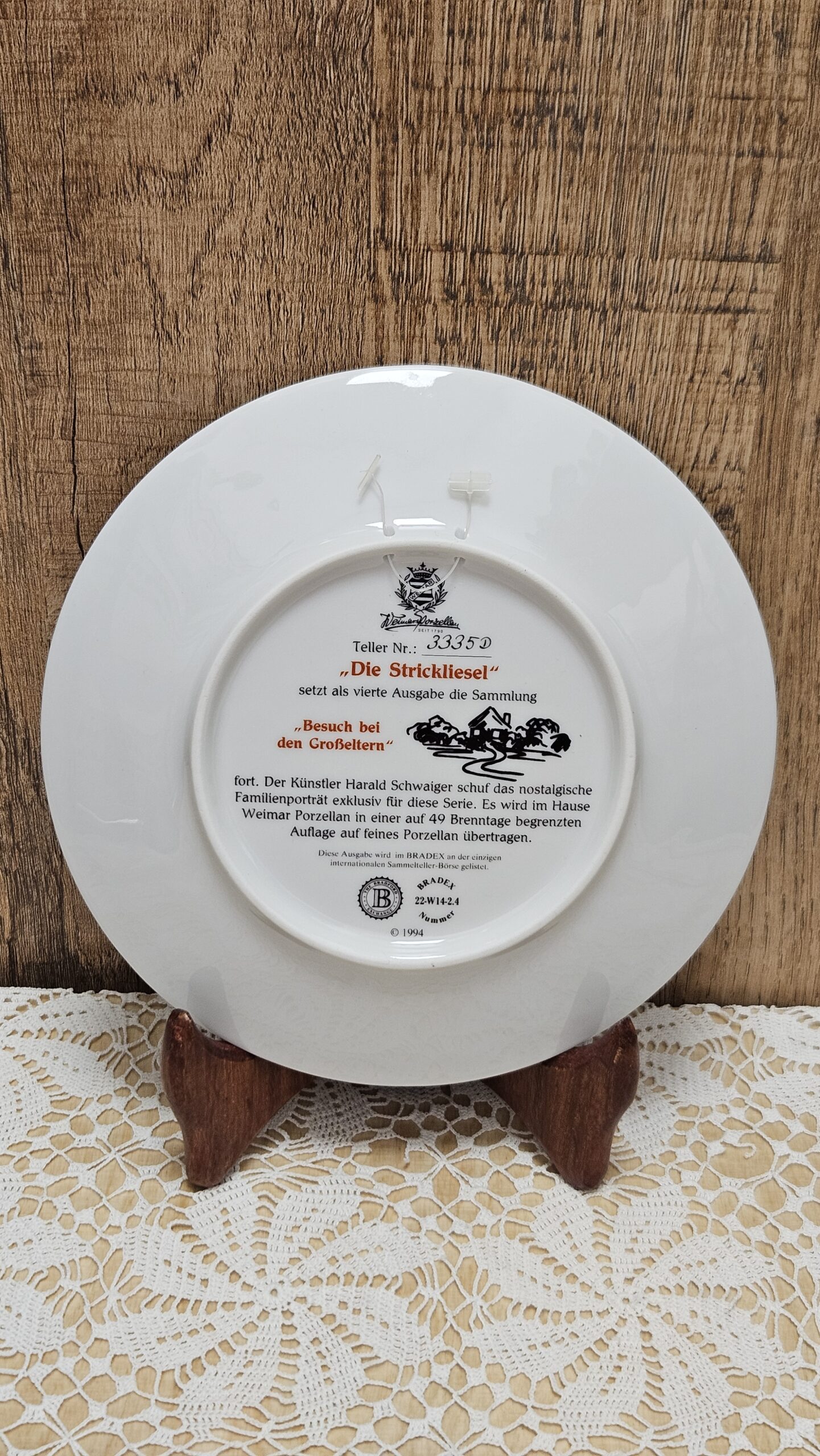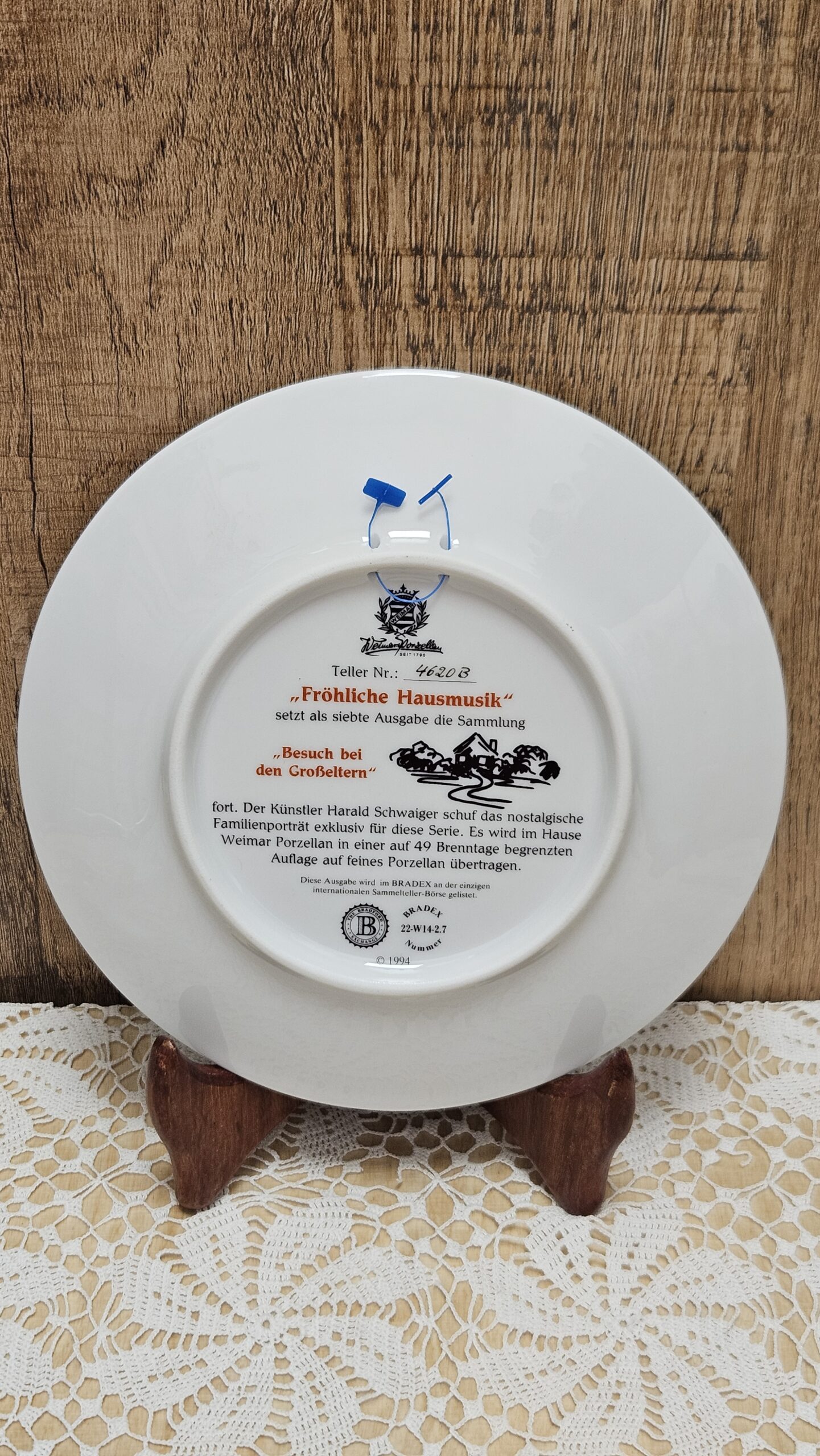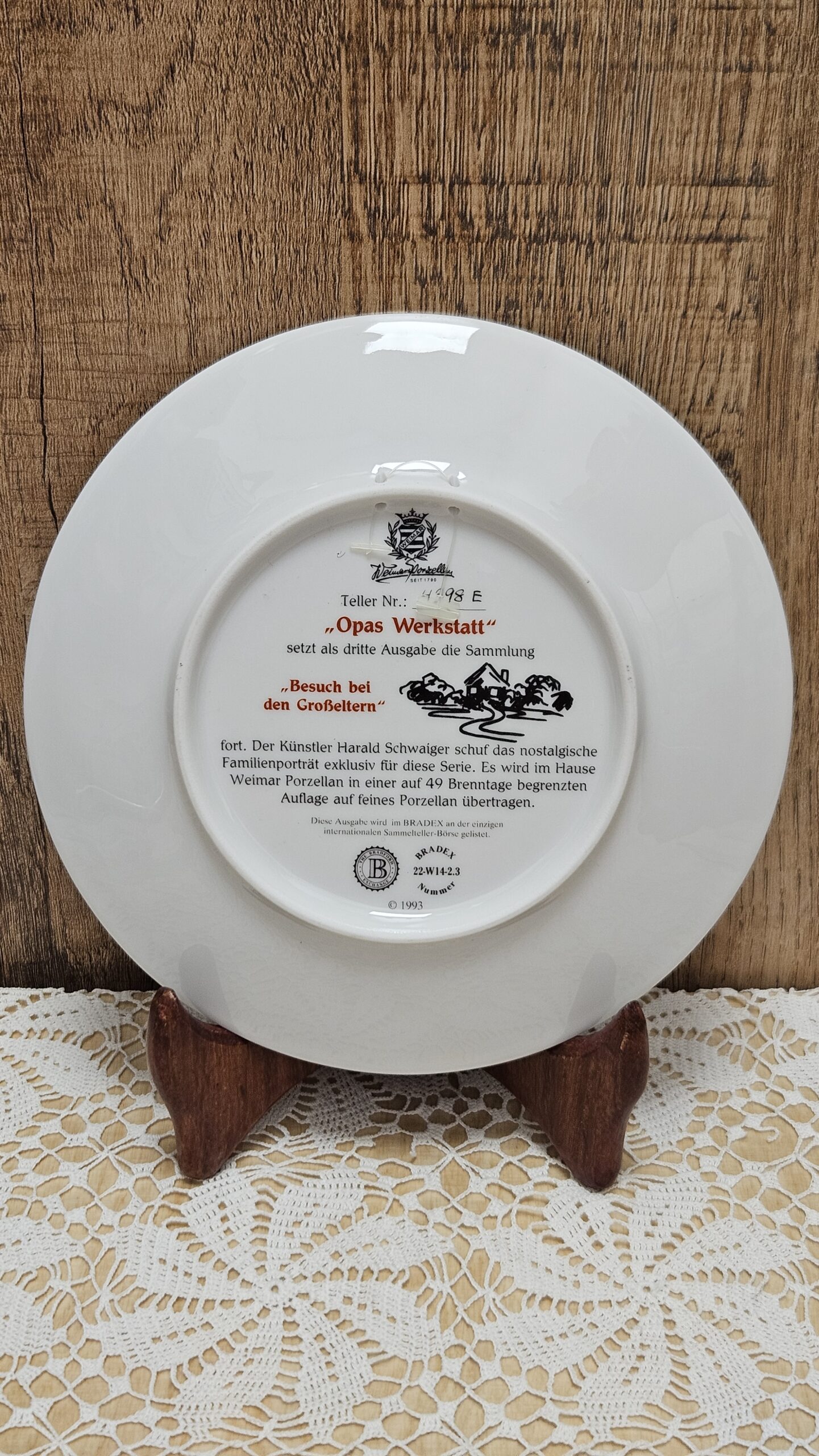 Seria dziewięciu talerzy kolekcjonerskich wykonanych z porcelany przez wytwórnie porcelany Weimar. Limitowana seria wydana w roku 1993, wpisana do międzynarodowego katalogu Bradex. Zatytułowana „Wizyta u dziadków”, stworzona przez artystę Harald Schwaiger. Osiem talerzy o średnicy 19,5 cm, wysokości 2 cm. Jeden talerz o średnicy 26 cm, wysokość 2 cm. Cena za pojedynczy talerz mały 70 zł. Cena za duży 90 zł. Cena za komplet 9 sztuk 500 zł.