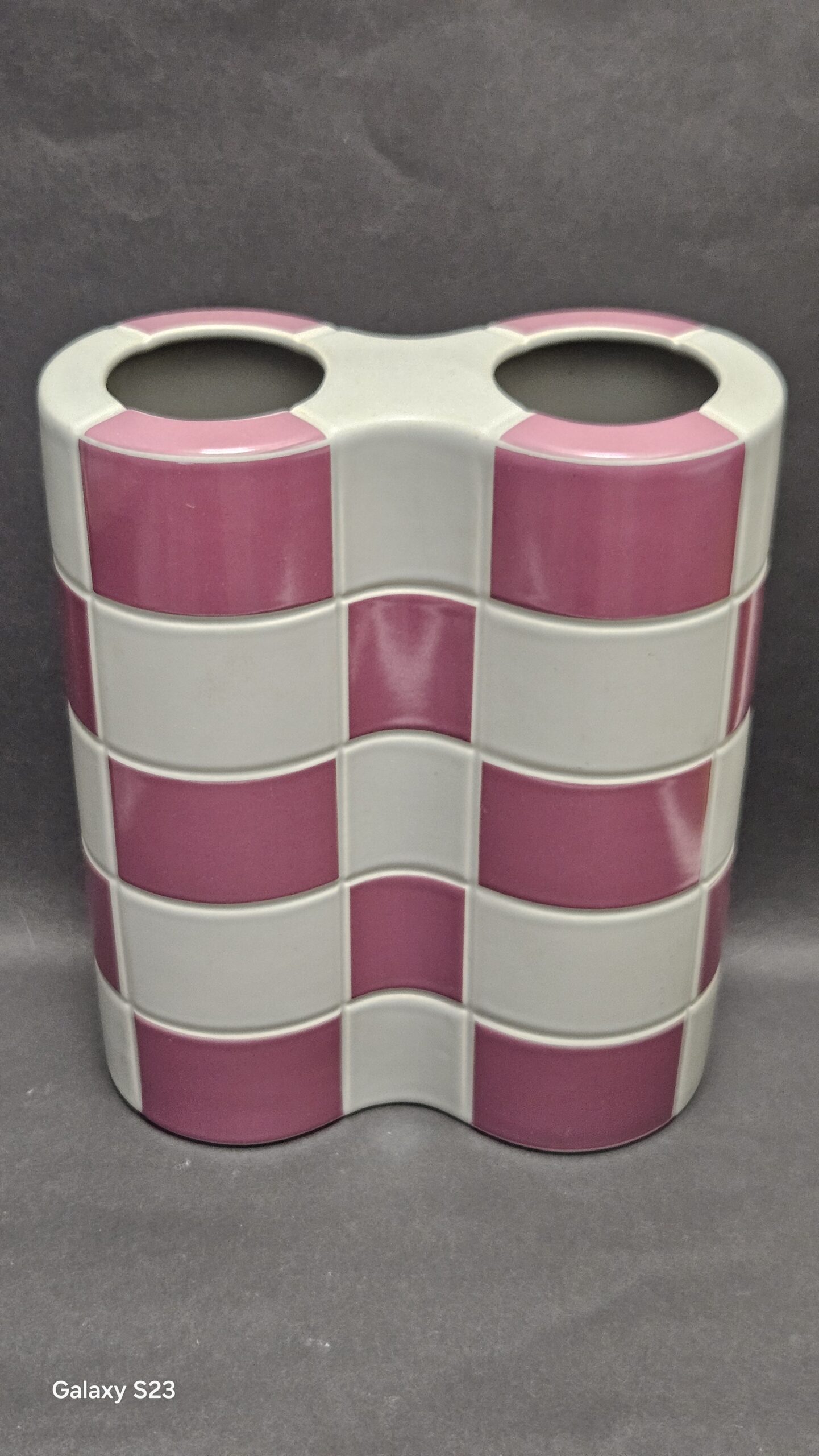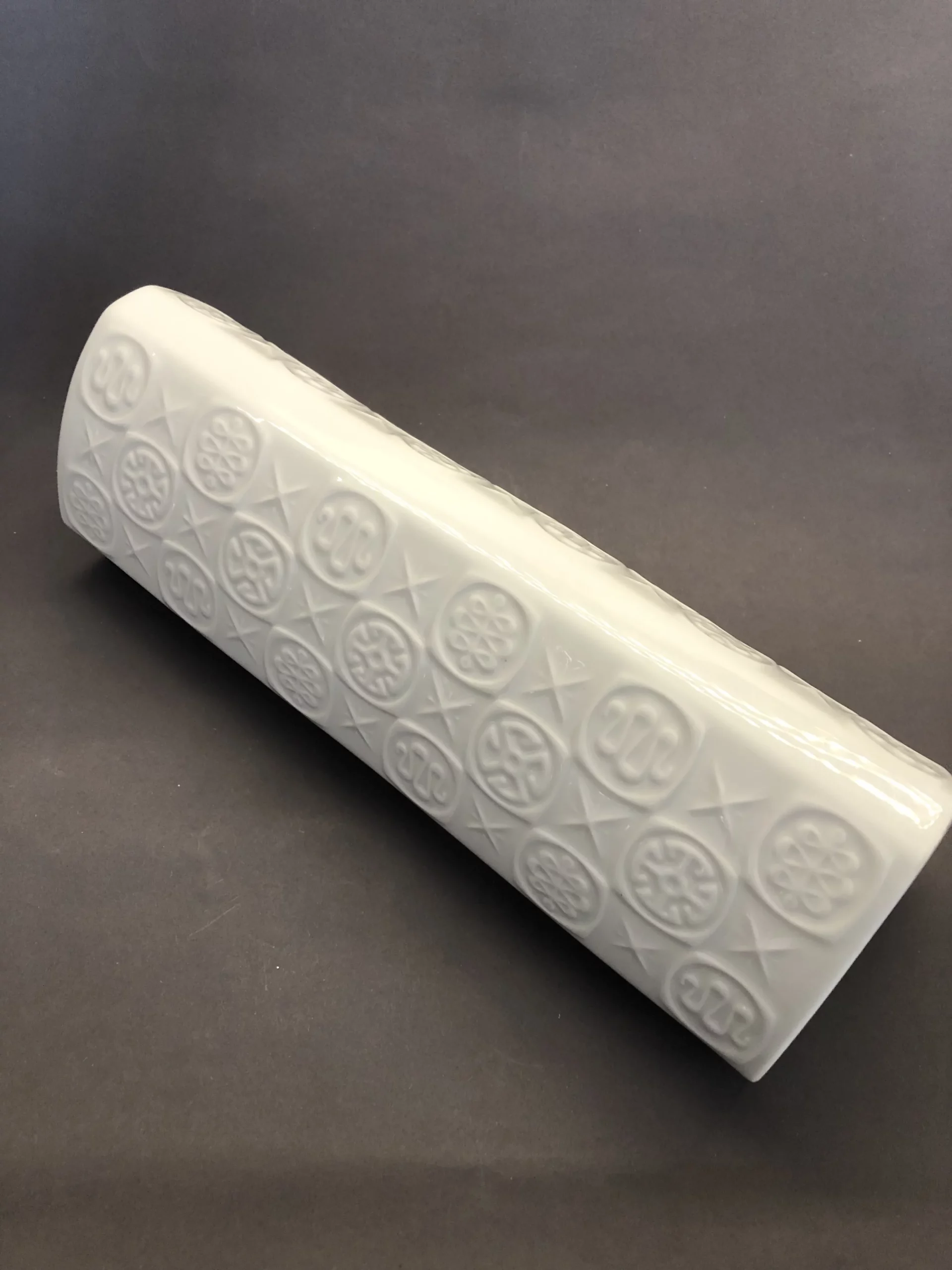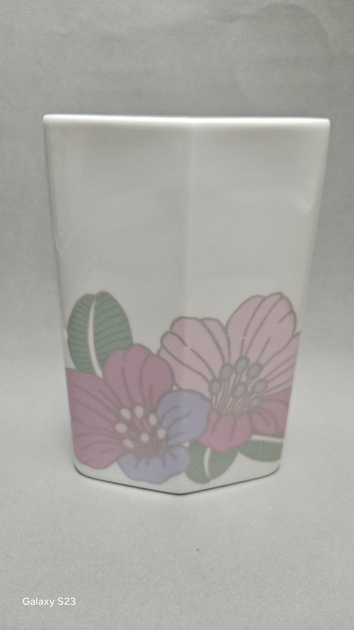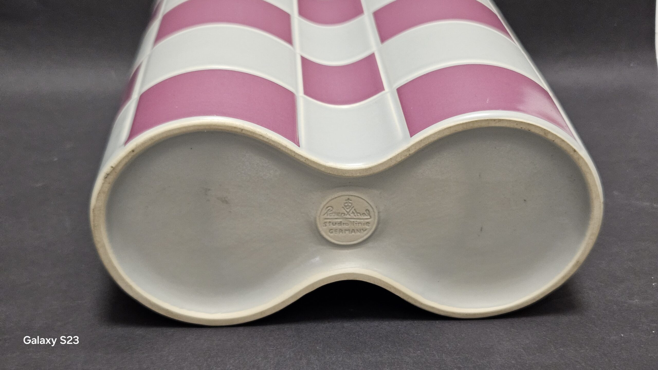 Porcelanowy wazon znanej wytwórni porcelany Miśnia, zaprojektowany w latach 60-tych przez Ludwika Zepnera. Biała porcelana z pięknym połyskiem. Na spodzie sygnaturka Miśni, szable, na nich wycisk z trzech kresek, na obrzeżu kropka granatowa. Wycisk 14 Z i znaki trudne do zdefiniowania , cyfra 29, nad szablami słabo widoczny wycisk szabli i znaki trudne do zidentyfikowania. Na podstawie ledwo widoczny odprysk. Wysokość wazonu 24 cm, średnica otworu 5 cm, średnica podstawy 6 cm, szerokość 11 cm. Cena wazonu 250 złotych.
