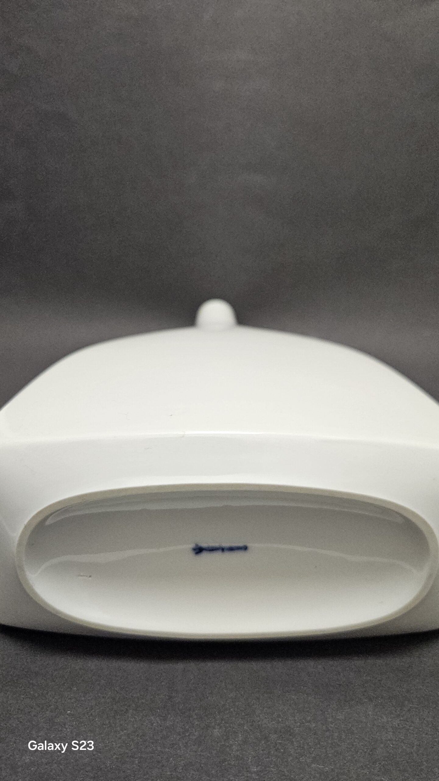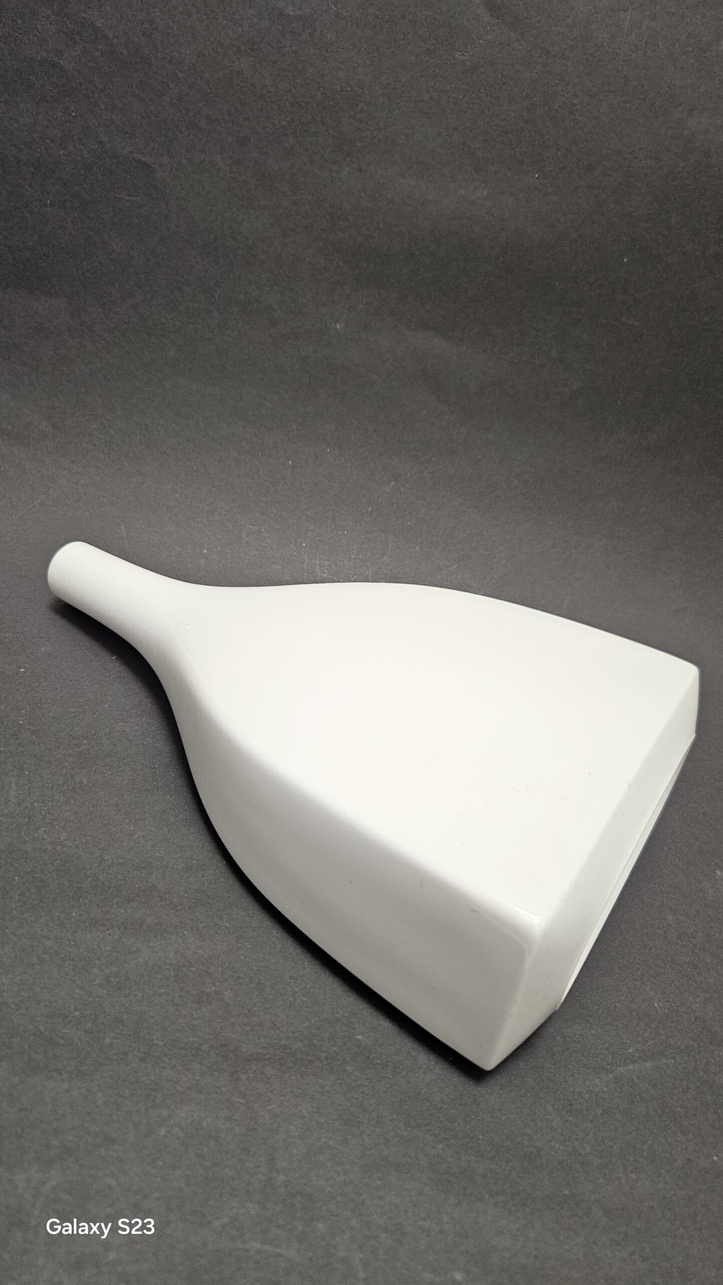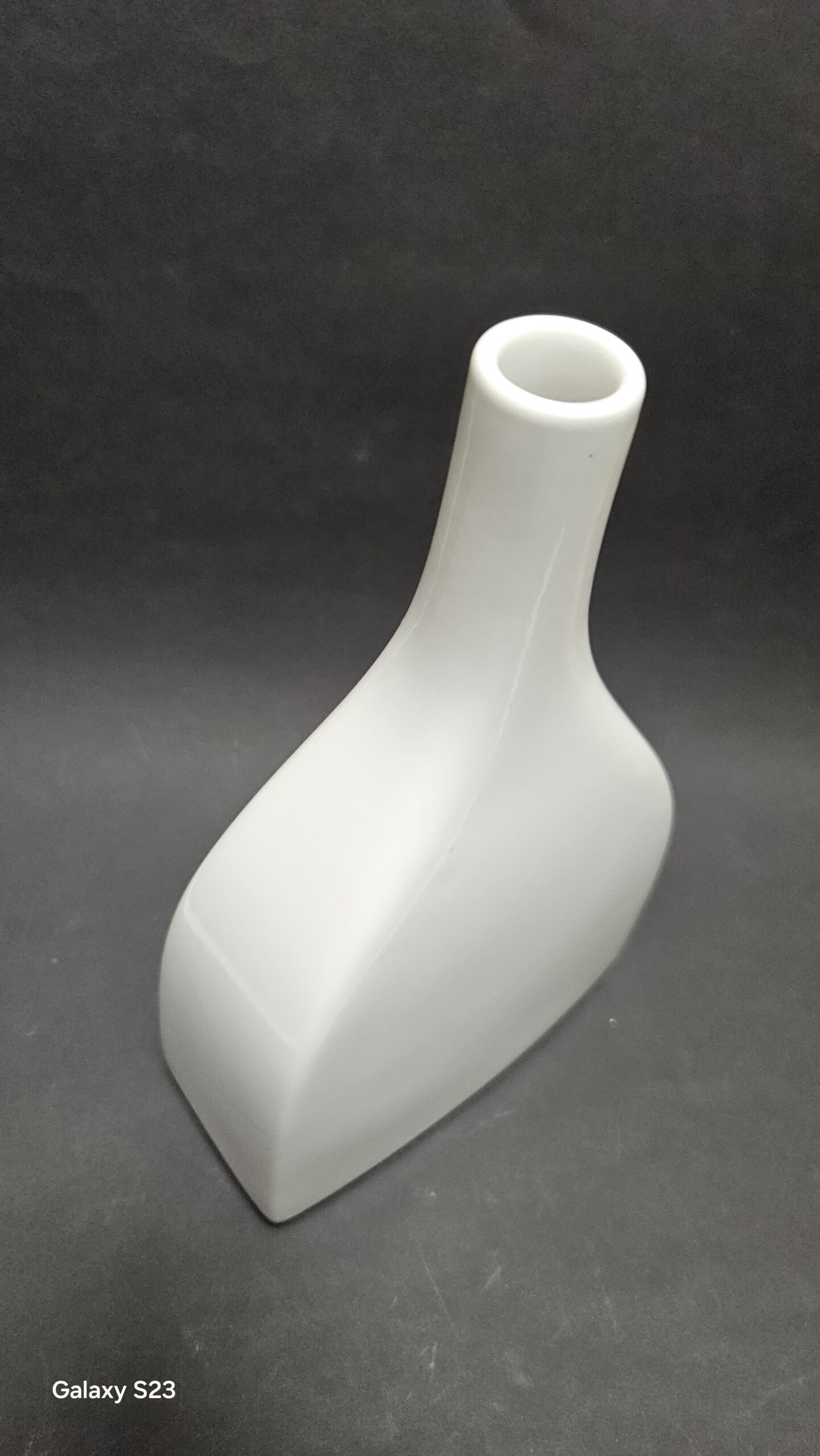 Porcelanowy wazon pochodzi z wytwórni porcelany KPM Berlin zaprojektowany przez Trude Petri w latach 1950-1959. Biała porcelana w kształcie butli z błyszczącym szkliwem, ponadczaswa. Wysokość 25 cm, szerokość 14,5 cm, głębokość 7,5 cm, średnica szyjki 2,5 cm, otworu 1,8 cm. Cena 400 złotych.