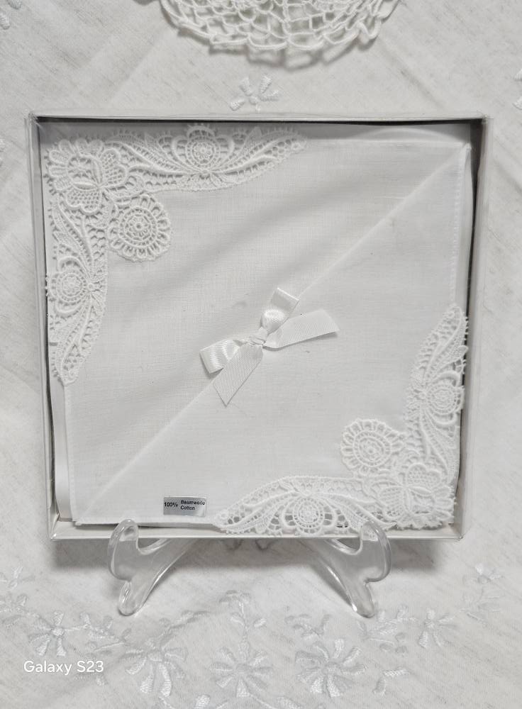 Duży wybór eleganckich chusteczek bawełnianych, ręcznie wykonanych, różne wzory i rozmiary. (od 31 cm do 36 cm). Cena za komplet (2 sztuki w opakowaniu) 40 złotych.